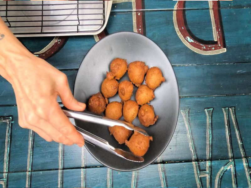 Heat lard or oil in a skillet to 350°F. Drop spoonfuls of batter and fry until golden brown on both sides. Drain on paper towels, then transfer to a plate.
